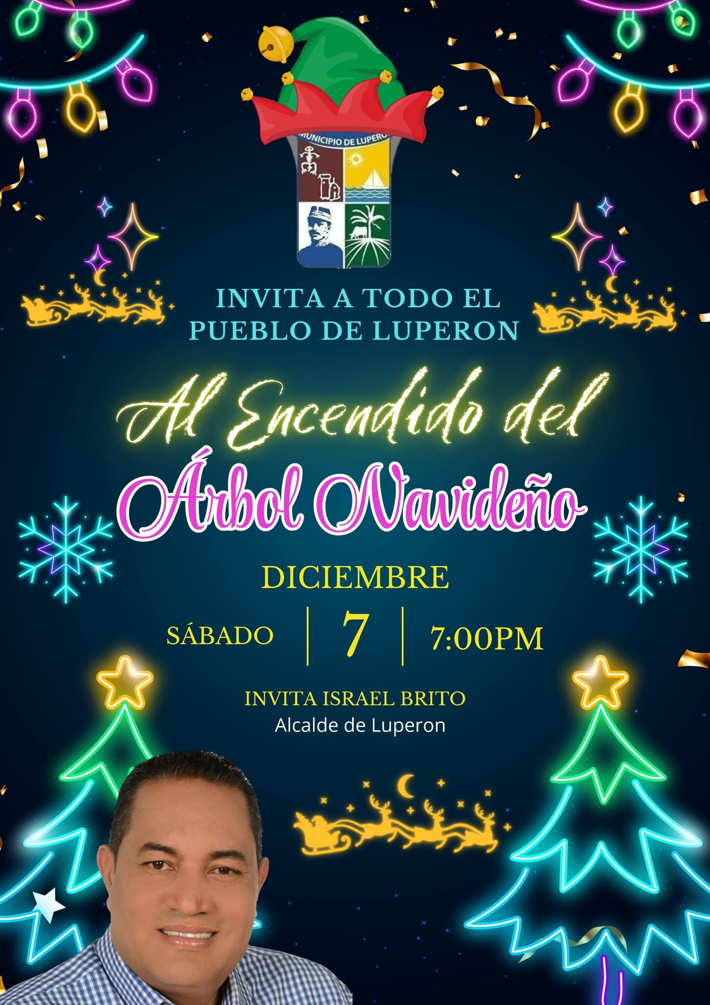 La Alcaldía Municipal de Luperón Invita al encendido del árbol de la Navidad , en el Parque Central , no falte en familia